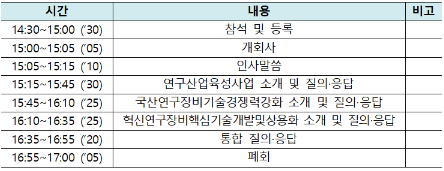 ㅇ 주요내용 : 연구산업 분야 ’26년 주요 사업소개 및 신규과제 지원사항 안내, 참석자 질의응답 등