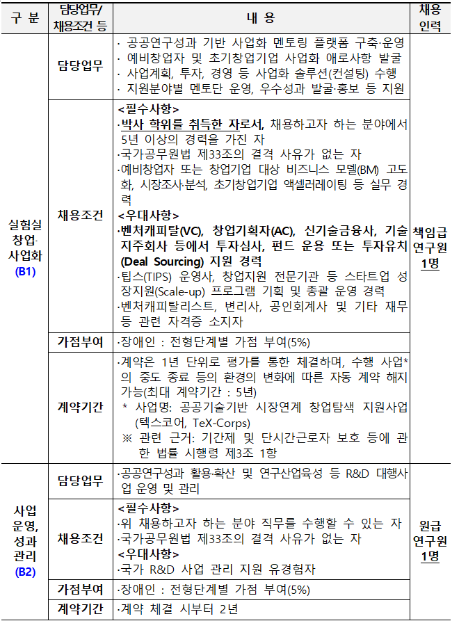 [제2026-002호] 과학기술사업화진흥원 2026년 1차 신규직원(계약직_책임급, 원급) 채용 공고