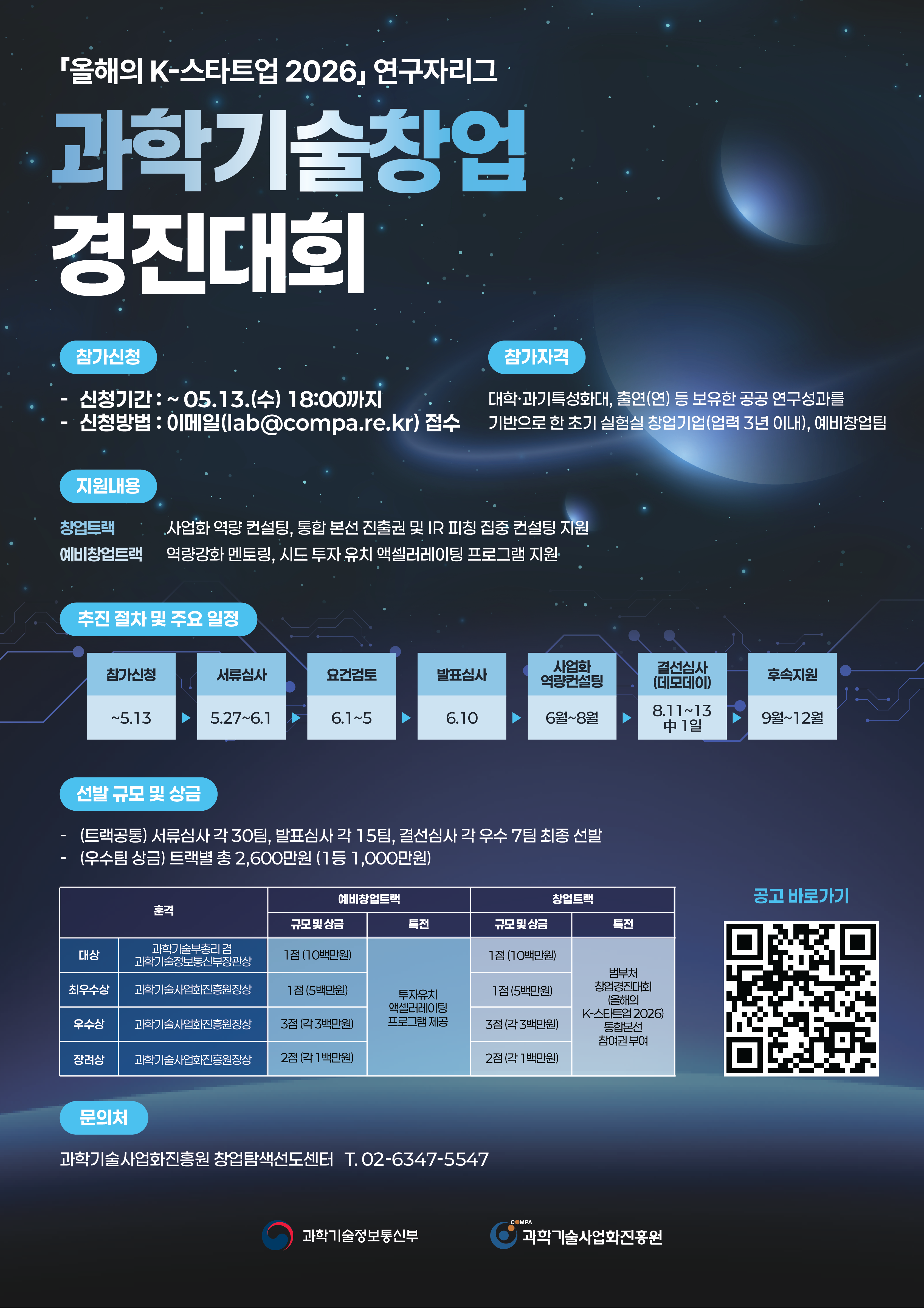 [과학기술정보통신부 공고 제2026-0460호] 2026년 과학기술 창업경진대회 공고 「올해의 K-스타트업 2026 연구자리그 연계」